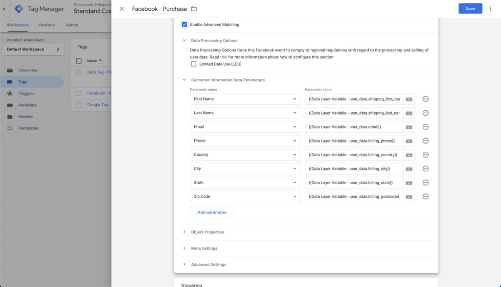 Step 3: Adding parameters to Google tag