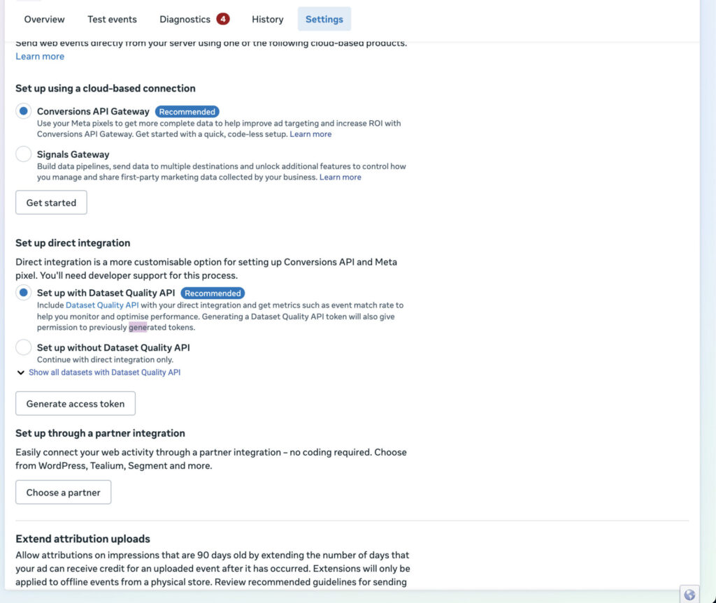 Add the pixel ID and generate a token by heading to the settings section in Meta’s business manger Click on Generate Access Token and copy as a constant.