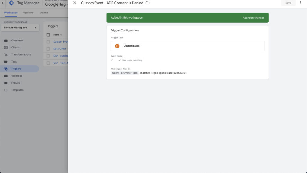 Now all you need to do is capture this information and turn it into an actual usable variable we can use to block tags. We use a variable called Query Parameter that will fetch a parameter like gcs containing consent states.