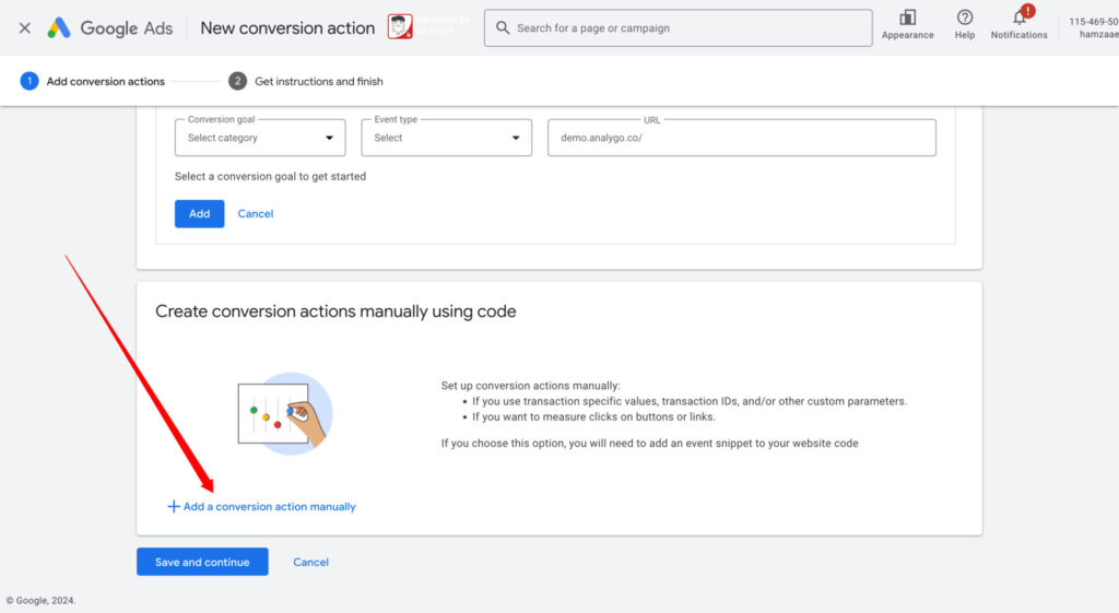 We will add the conversion manually. It will trigger when a user submits a form on our website.