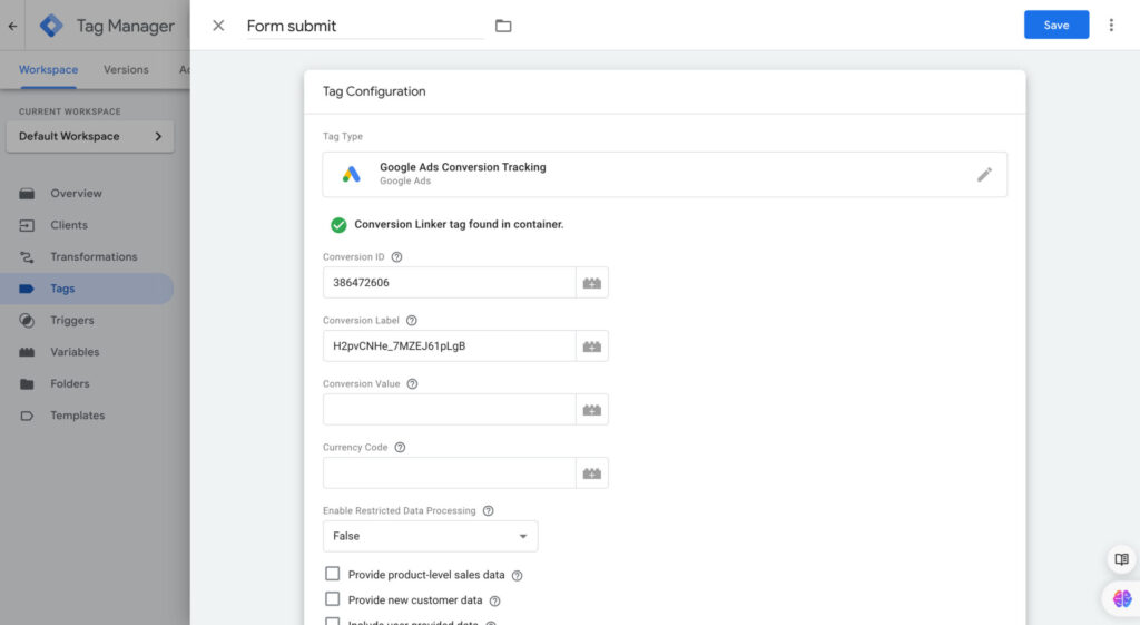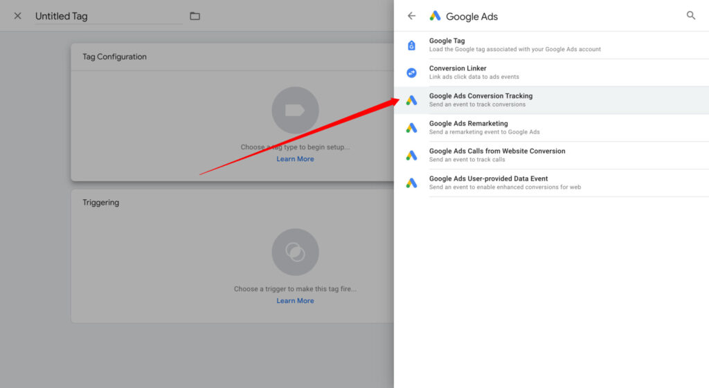 Section titled “Set up the conversion tag”Earlier, we created a conversion to track form submissions. It’s time to configure a conversion tag to send this data to Google Ads.