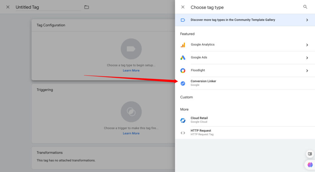 Section titled “Step 3: Configure Google Ads tag in server GTM”In server container, look for Conversion Linker and add it to your workspace.