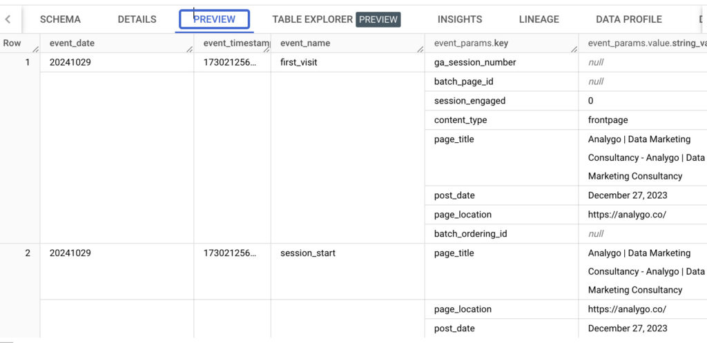 We will see in later articles how to start working with the GA4 export and Dataform.