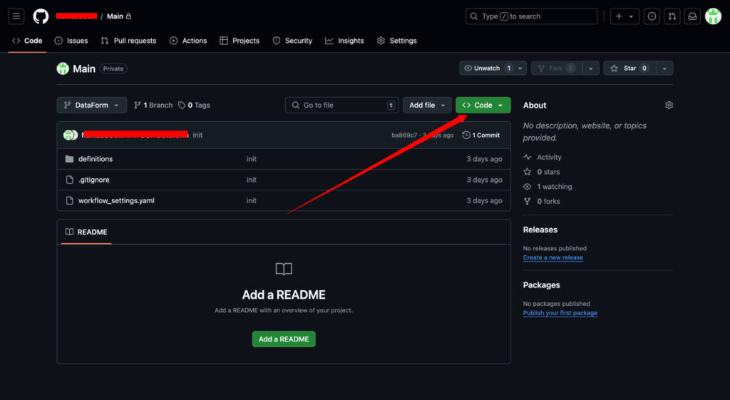 Finally, let’s connect the data form with GitHub. In the settings section of your repository, click on CONNECT WITH GIT.