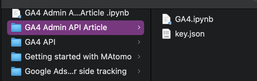 Section titled “How to make an API request using GA4 Admin API?”I will open VS Code and start preparing my set-up. First, let’s create a folder with the access key